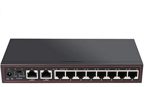 Interface: 8 ports 10/100Mbps PoE + 2 Ports Uplink